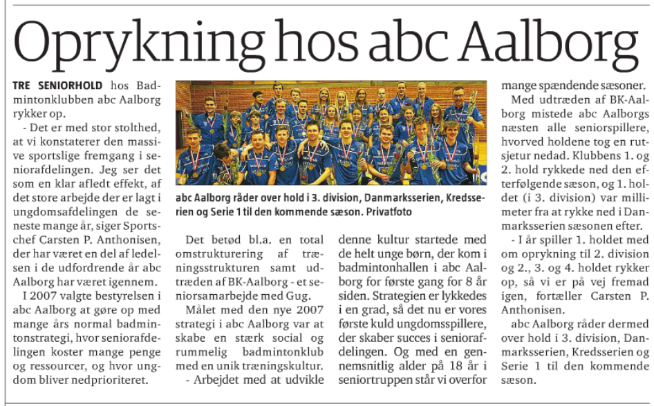 Oprykning til 3 seniorhold i abc Aalborg